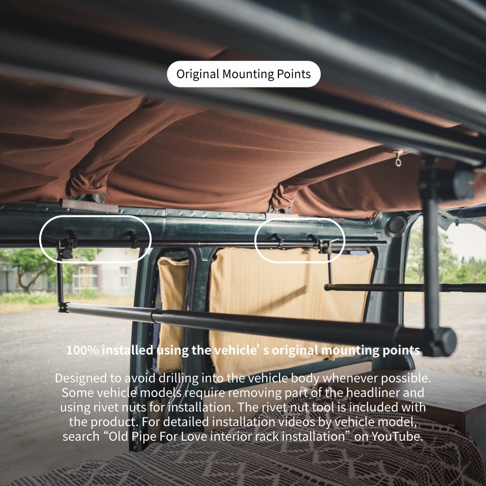 The installation method and actual performance of the For Love™ Interior Rack may vary depending on the vehicle’s body structure, factory mounting points, roof shape, interior configuration, and intended use.